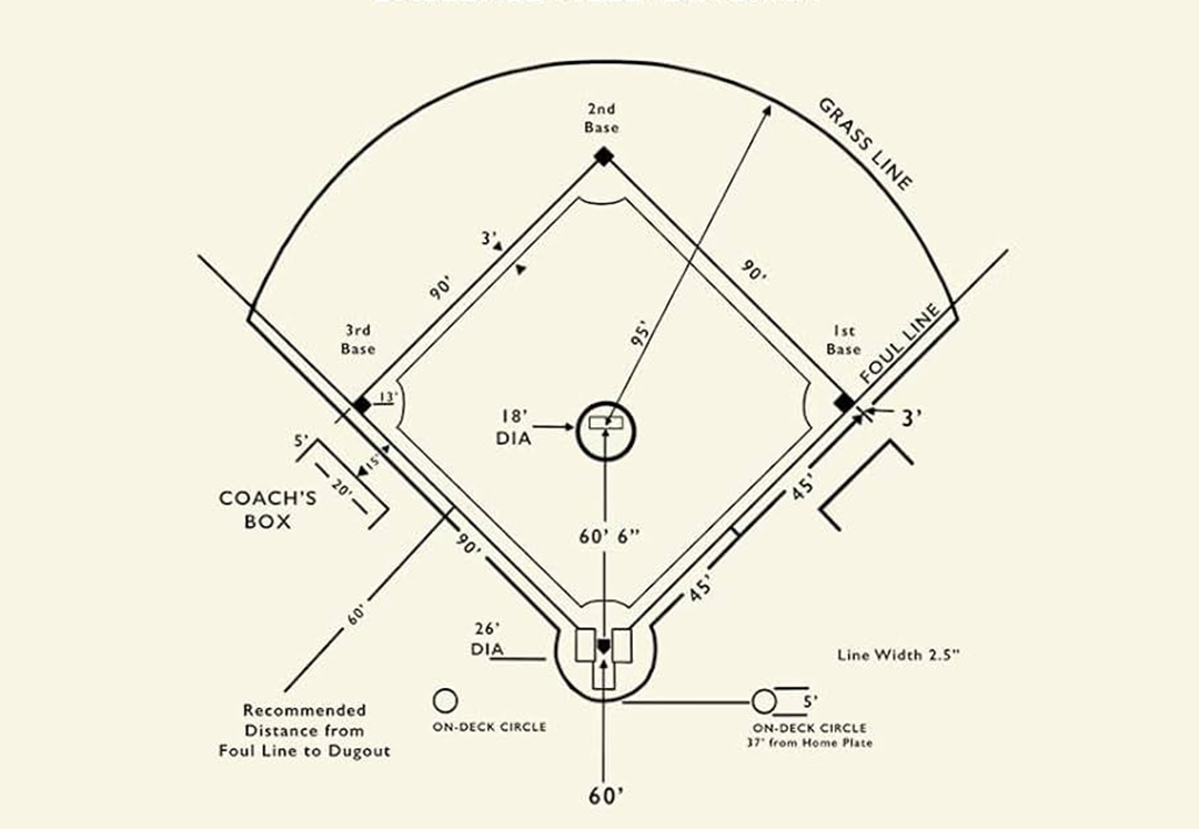 - Secondary Keywords: Infield dimensions, pitching mound distance, base path length, baseball field layout, 90-foot diamond.