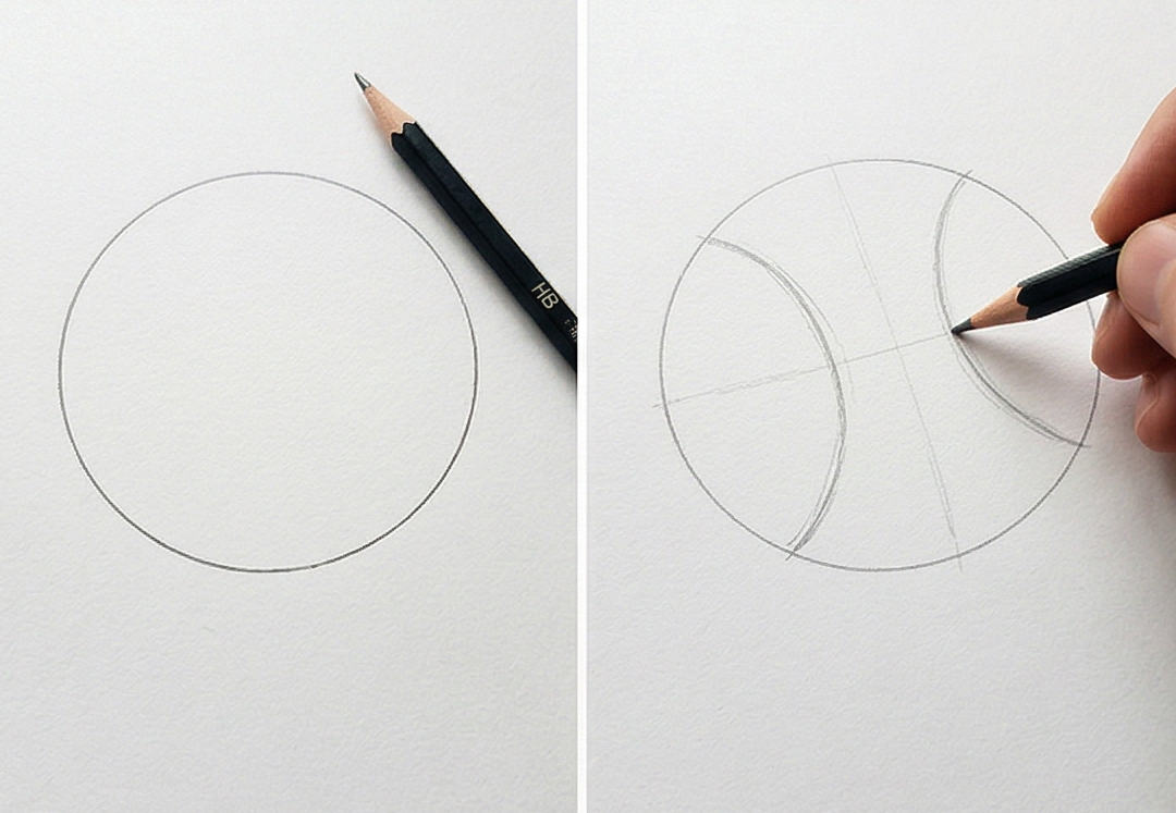 A baseball drawing is all about the “arc” of the seams. Once you master the curve, you can draw a ball from any angle—curving toward the viewer or flying away into the stands.